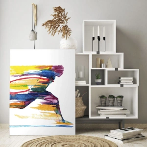 Umelecké dielo s rozmermi 70x50 cm je vyrobené na skle, čo mu dodáva výnimočnú eleganciu a odolnosť. Výrazné farby na minimalistickom bielom pozadí zdôrazňujú pohyb a ľahkosť, vďaka čomu je toto umenie ideálnym doplnkom do interiérov, ako je obývačka, posilňovňa alebo kancelária. Vďaka precíznemu remeselnému spracovaniu a jedinečnému dizajnu sa stane dekoratívnym ústredným bodom v každej miestnosti.