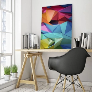 - Geometrická kompozícia v intenzívnych a viacfarebných odtieňoch, ideálna do moderných interiérov.