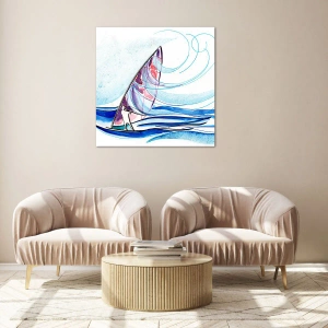 Nástenná maľba - S vetrom v rytme vĺn - Plachetnica na vlnách v akvarelovom štýle