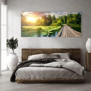 Prírodný motív v obraze evokuje letný relax a slobodu, vďaka čomu je vynikajúcou voľbou pre tých, ktorí si cenia harmóniu a krásu. Drevené mólo a labuť na pozadí jazera vytvárajú idylickú krajinu, ktorá do interiéru prináša harmóniu a pokoj.