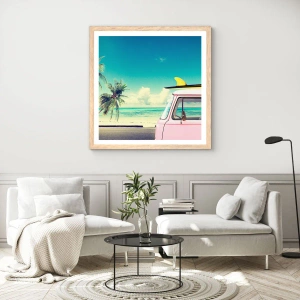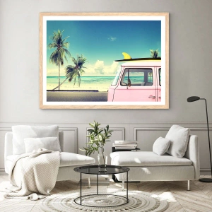 Plagát v ráme zo svetlého duba - Prázdniny, je čas začať - 70x100 cm