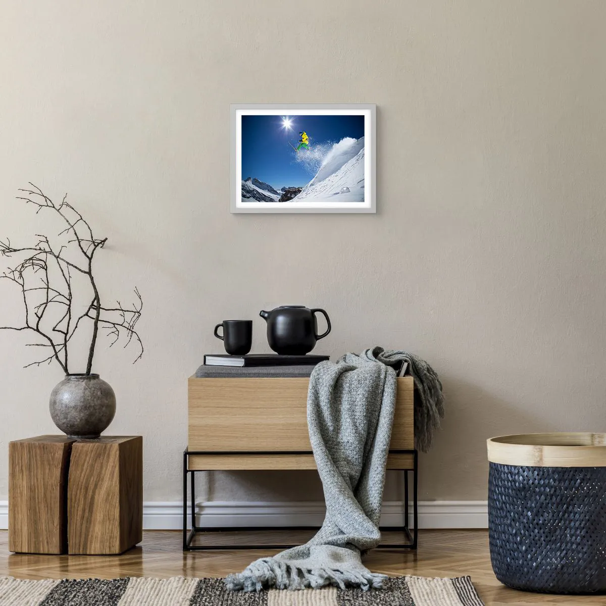 Plagát v bielom ráme - Tancujúci s horami - 40x30 cm