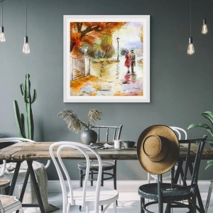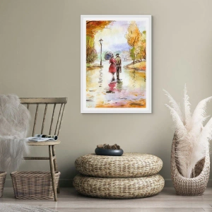Plagát v bielom ráme - Romantická jeseň v parku - 40x50 cm