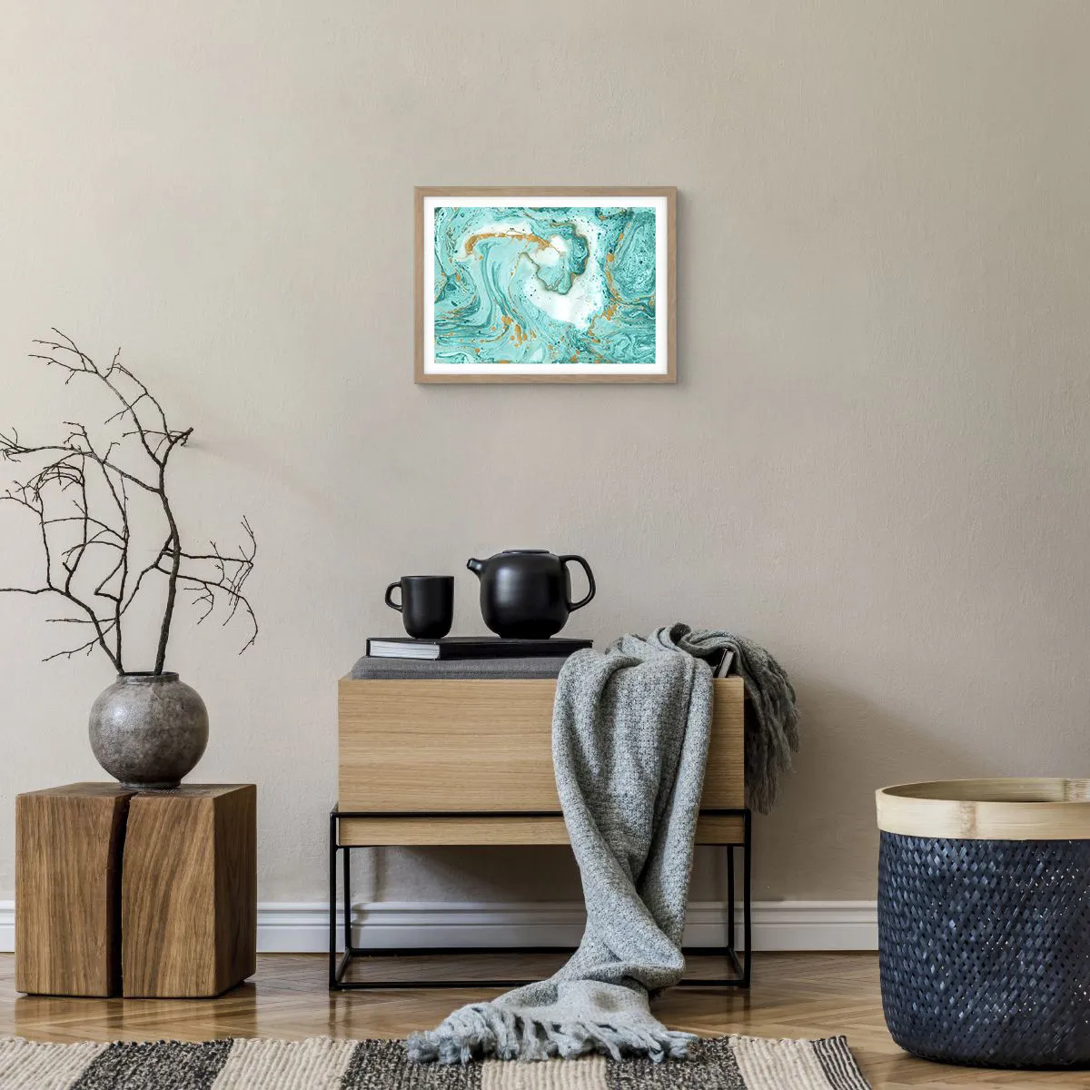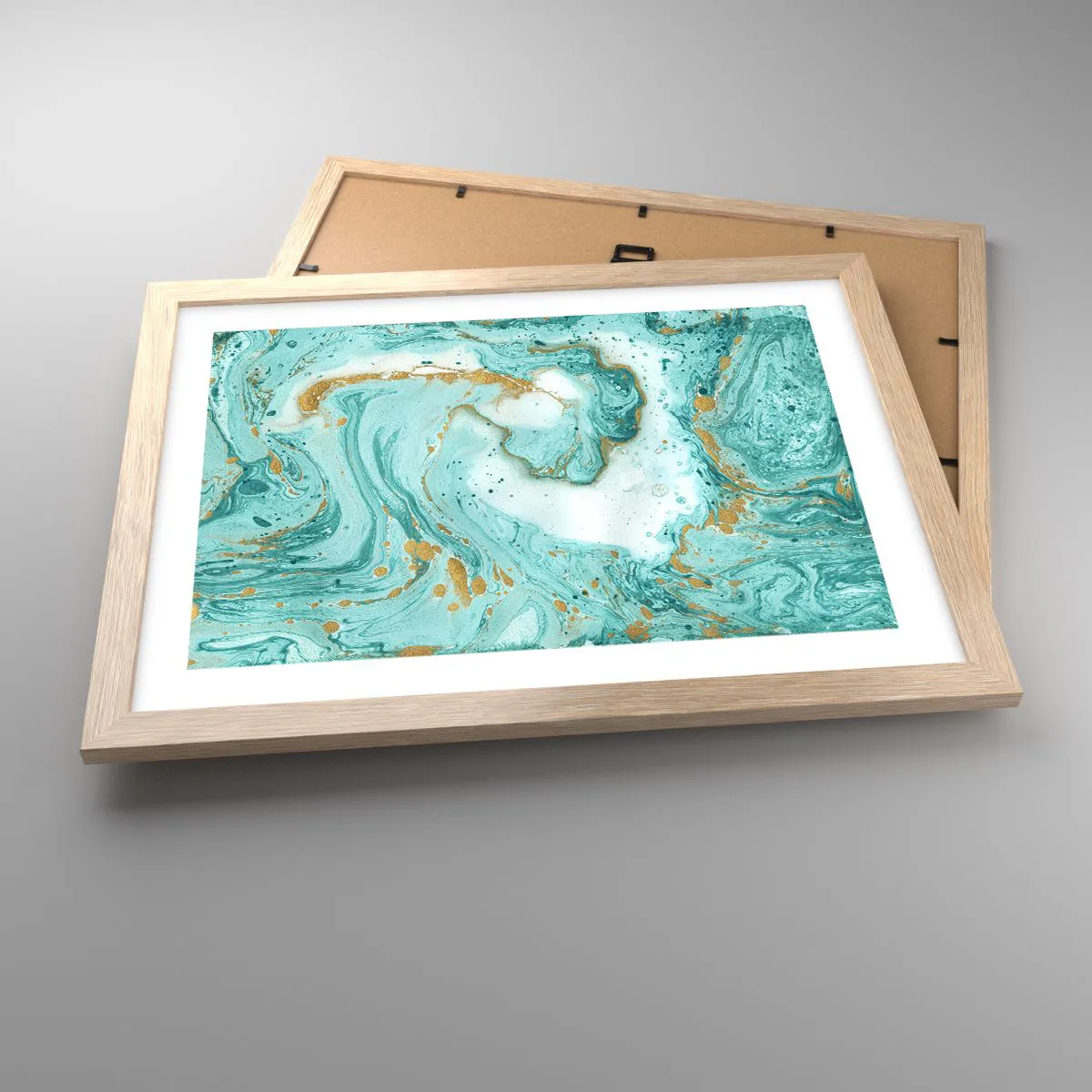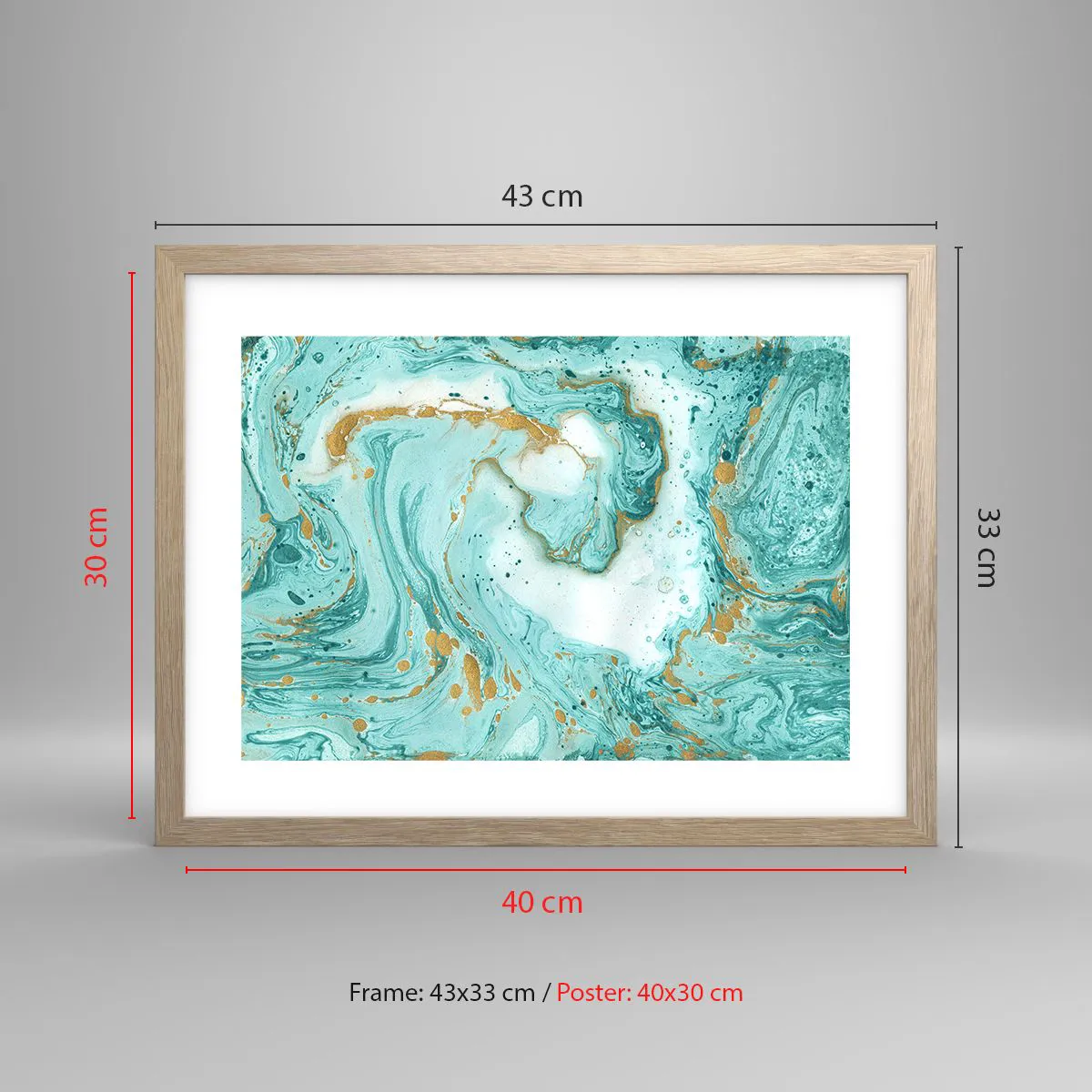 Plagát v ráme zo svetlého duba - Pod veľkou vlnou z epochy Edo - 40x30 cm