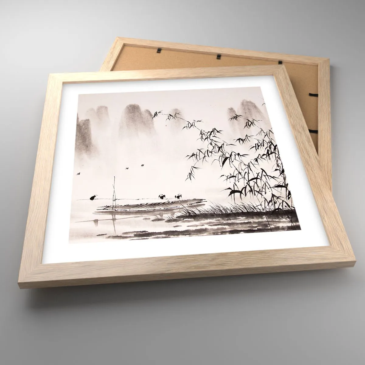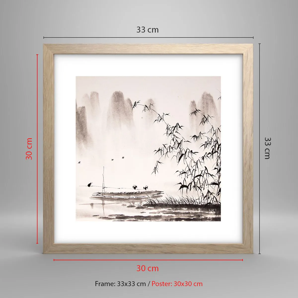 Plagát v ráme zo svetlého duba - Pokoj ryžových polí - 30x30 cm