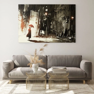 Obraz na skle - Poézia červeného dáždnika - 30x30 cm