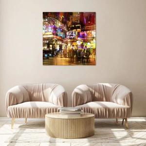 Motív **mesta v noci** osvetleného **neónmi** symbolizuje energiu, kreativitu a neustály pohyb, ktoré sú podstatou života v metropole. Tento obraz inšpiruje k akcii, vnáša do interiéru dynamiku a poteší svojou umeleckou víziou mestskej krajiny.