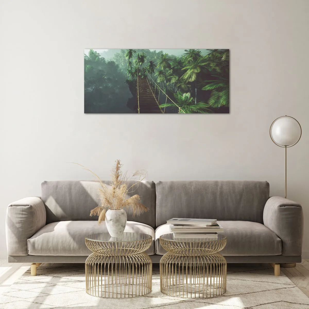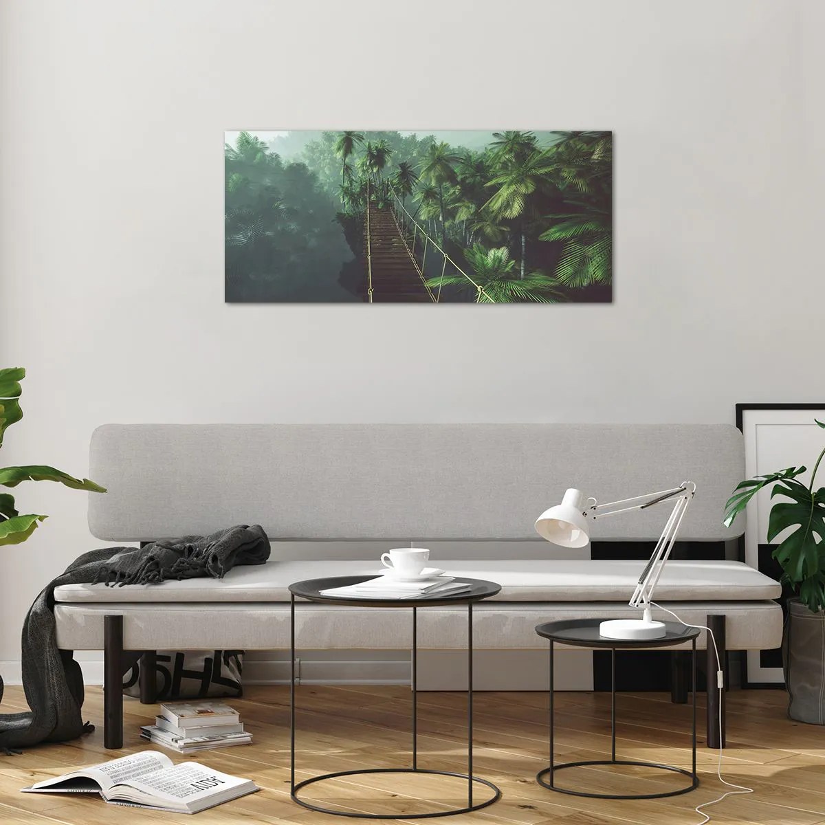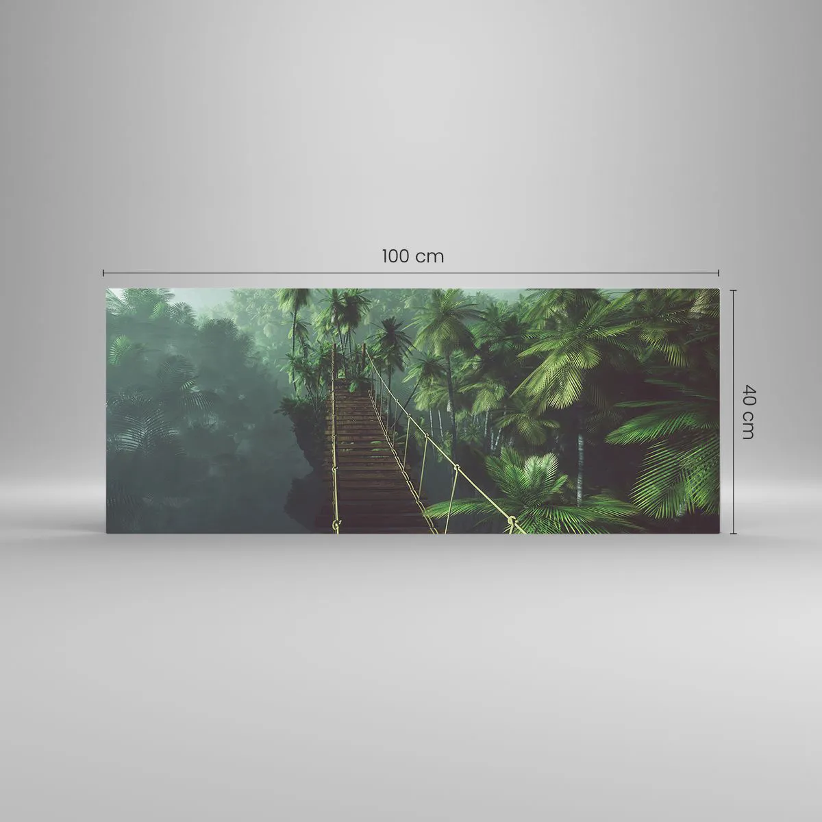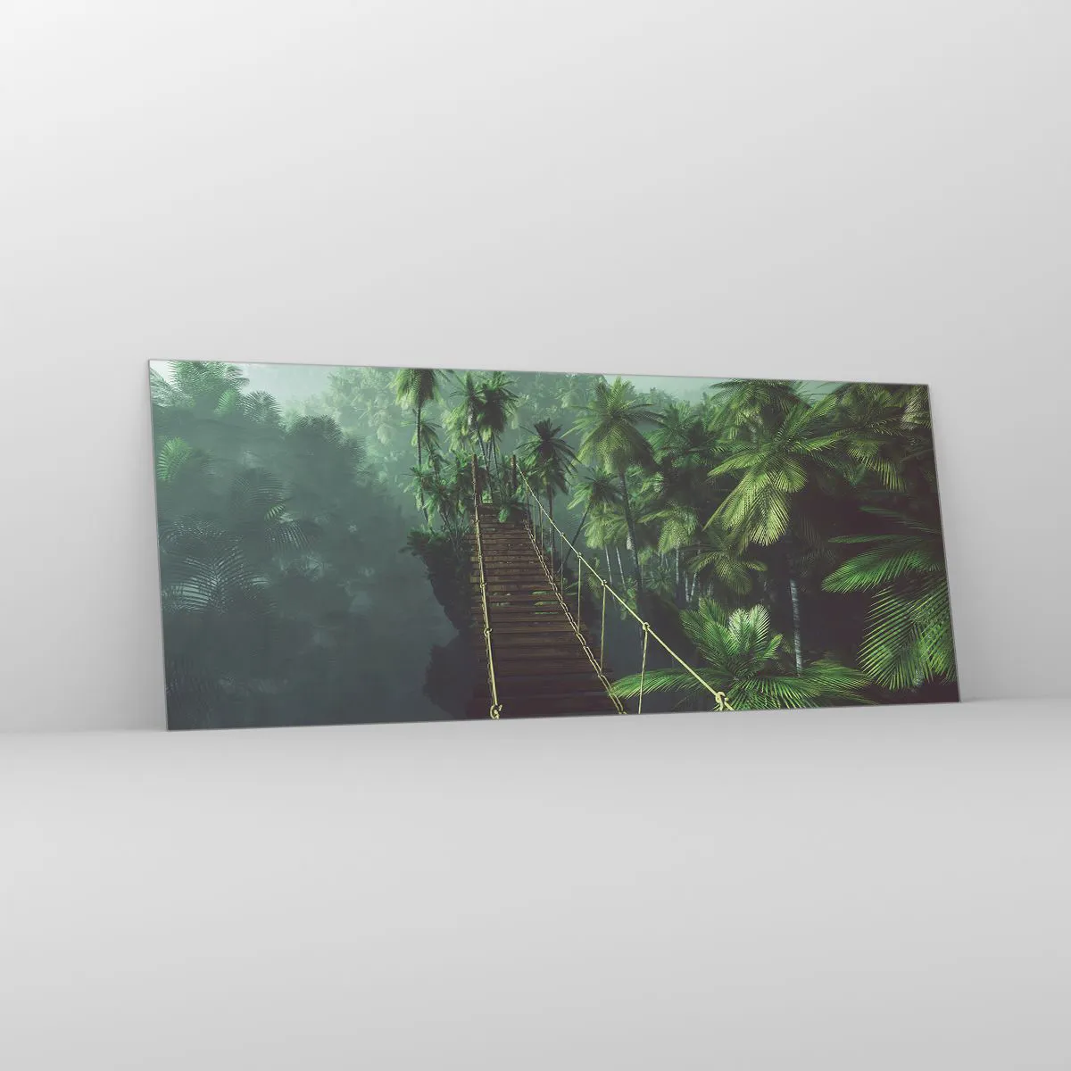 Obraz na skle - Pri vodopáde zelene - 100x40 cm