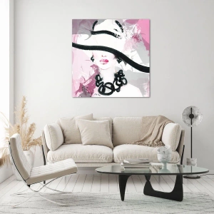 Obraz na skle - Portrét dámy v čiernej a ružovej - 50x70 cm