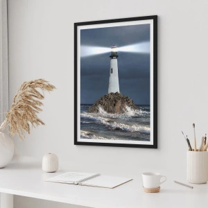 Plagát v čiernom ráme - Maják na skale uprostred rozbúrených vĺn - 50x70cm - Tu…tu…tuná! - Moderná nástenná dekorácia do obývacej izby a spálne ARTTOR