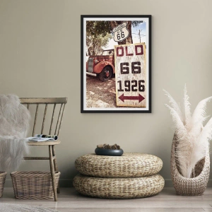 - Tento plagát vo vintage štýle zobrazuje klasické auto pri značke Route 66. Ideálny pre automobilových nadšencov a milovníkov retro štýlu. Produkt je dodávaný s čiernym rámom s rozmermi 50x70 cm.