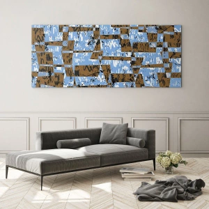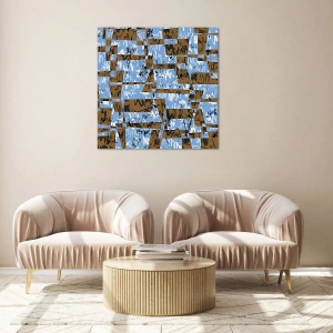 - Táto sklenená tlač s rozmermi 70x50 cm predstavuje geometrickú abstrakciu v odtieňoch modrej a hnedej. Ideálna do moderných interiérov, ktoré si cenia štýl a harmóniu.
