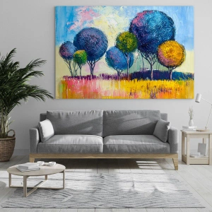 Vyberte si obraz zobrazujúci farebné stromy na pozadí abstraktnej krajiny, aby ste do svojho interiéru vniesli harmóniu, energiu a umelecký výraz. Nech sa tento obraz stane ústredným bodom vášho domova alebo kancelárie.