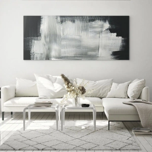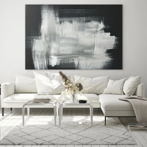 Čiernobiele čiary a textúry vzájomne pôsobia a vytvárajú jemnú hru svetla a tieňa. Obraz odráža moderný štýl a vnáša do interiéru eleganciu a umelecký výraz. Toto dielo inšpiruje k zamysleniu a zdôrazňuje individuálny charakter každej miestnosti.