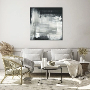 Obraz na skle - Minimalistická abstrakcia v čiernej a bielej farbe - 70x50cm - Utkané zvisle a vodorovne - Moderná nástenná dekorácia do obývacej izby a spálne ARTTOR