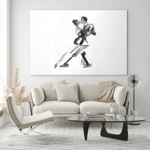 Obraz na skle - Pár tancuje tango v čiernobielom akvarelovom štýle - 70x50cm - V jednom rytme - Moderná nástenná dekorácia do obývacej izby a spálne ARTTOR