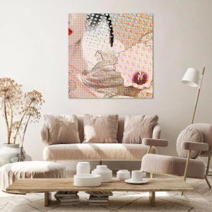 Plátno „Abstraktné umelecké dielo s motívom úst a orchidey“ je jedinečné dielo, ktoré kombinuje umeleckú formu s jemným kontrastom prvkov. Kompozícia zobrazuje výrazné červené pery, jemne kontrastované s krásnou orchideou, čím vytvára výraznú harmóniu medzi intenzitou a jemnosťou. Celé dielo je zachované v abstraktnom štýle s použitím moderných grafických techník a žiarivých farieb.