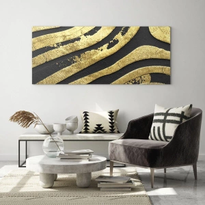 - Exkluzívna kompozícia abstraktných zlatých línií na tmavo čiernom pozadí. Elegantný a moderný dizajn, ktorý dodá luxus a štýl každému interiéru.