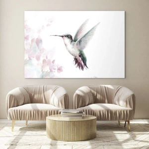 Symbolika kolibríka sa spája s pôvabom, energiou a ľahkosťou života. V kombinácii s jemnými pastelovými odtieňmi pozadia a kvetov vytvára obraz, ktorý do interiéru prináša pocit slobody a inšpirácie. Toto je návrh pre tých, ktorí oceňujú umenie plné jemných detailov a harmonických farieb.