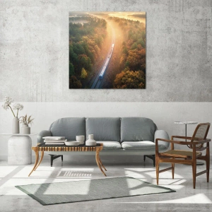 Sklenený obraz „Jesenná cesta“ prináša pokojnú, melancholickú atmosféru cesty krásnou jesennou krajinou. Je ideálnou voľbou pre milovníkov prírody, cestovania a železníc, ktorí sa chcú obklopiť umením naplneným harmóniou a teplom.