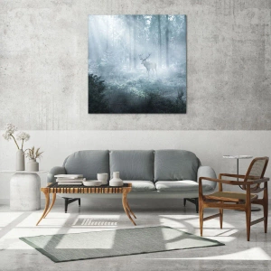 Kompozícia je zachovaná v chladnej farebnej palete - dominujú odtiene sivej, modrej a zelenej, ktoré umocňujú dojem rannej sviežosti a harmónie. Je perfektná ako dekorácia do spálne, obývačky alebo relaxačného priestoru, prináša nádych prírody a chvíľku pokoja. Obraz osloví milovníkov lesa a divokej zveri.