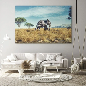 Motív slona so zebřími pruhmi je jedinečnou hrou s konvenciami. Tento obraz určite osloví tých, ktorí ocenia nezvyčajné, kreatívne akcenty v interiéroch. Je ideálny do detskej izby, izby pre tínedžera alebo do akéhokoľvek priestoru s ležérnym, umeleckým nádychom. Tento obraz hovorí o slobode predstavivosti, búraní stereotypov a odvahe byť iný. Tento motív nielen pobaví, ale aj povzbudí k zamysleniu a konverzácii.