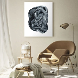 Použitie čiernej a bielej farby robí dielo nadčasovým – dokonale sa hodí do svetlých aj tmavých interiérov. Môže kontrastovať so zvyškom dekorácie alebo harmonicky dopĺňať industriálne či škandinávske štýly. Je to návrh pre tých, ktorí oceňujú súčasné umenie, nekonvenčné formy a hlbšie významy. Tento obraz bude perfektný do obývačky, kancelárie, spálne alebo loftového interiéru.