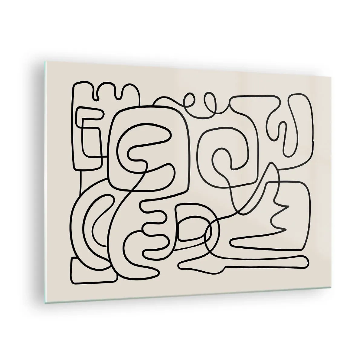 Obraz na skle - Čierne abstraktné čiary tvoria zložitý vzor na béžovej - 70x50cm - Podľa stopy - Moderná nástenná dekorácia do obývacej izby a spálne ARTTOR