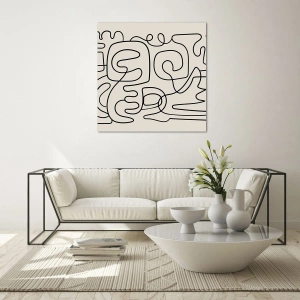 • Obraz zložený z čiernych abstraktných línií vytvárajúcich dynamický vzor na béžovom pozadí. Kompozícia kombinuje minimalizmus s umeleckým vyjadrením, ideálna pre moderné a dizajnérske interiéry.
