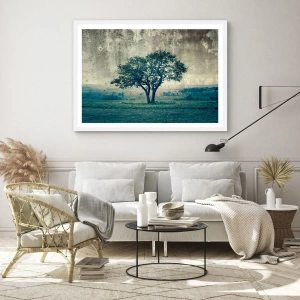 Plagát v bielom ráme - Jabloň na modrom poli? - 60x60 cm