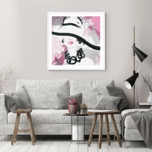 Plagát v bielom ráme - Portrét dámy v čiernej a ružovej - 40x40 cm