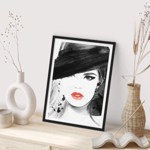 Plagát „Dáma v čiernom“ – Portrét ženy v klobúku s výraznými červenými perami