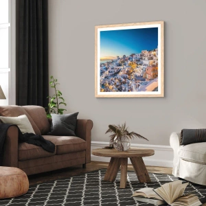 Plagát v ráme zo svetlého duba - Esencia Grécka - 40x40 cm