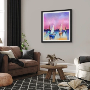 Plagát v čiernom ráme - Abstraktné plachetnice na farebnom pozadí - 50x70cm - Smer: široká voda - Moderná nástenná dekorácia do obývacej izby a spálne ARTTOR