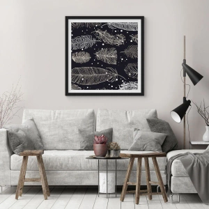 - Tento plagát zobrazuje biele perie na čiernom pozadí v elegantnom aranžmáne. Je ideálny do moderného interiéru a je k dispozícii s čiernym rámom.