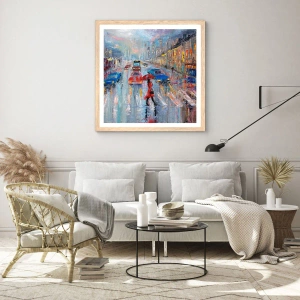 Plagát v ráme zo svetlého duba - Daždivé popoludnie v meste - 50x40 cm