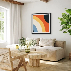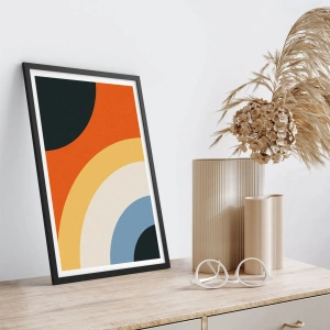- Tento plagát zobrazuje abstraktné oblúky a kruhy v oranžovej, žltej a modrej farbe. Je ideálny do moderného interiéru a má čierny rám.