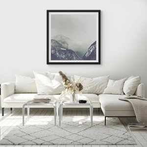 - Plagát zobrazuje tajomnú horskú krajinu zahalenú v hmle. Monochromatické farby zdôrazňujú minimalizmus a jemnú eleganciu, ideálne pre moderné alebo klasické interiéry.