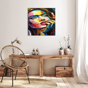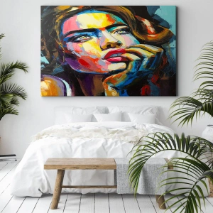- Tento obraz zobrazuje farebný portrét ženy v expresionistickom štýle. Umelecká kompozícia prináša do interiéru energiu a expresivitu.