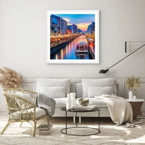 Plagát v bielom ráme - Večer plný svetla a zábavy - 60x60 cm