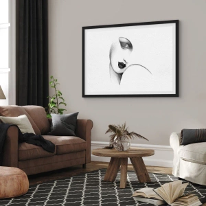 Plagát v čiernom ráme - Jemný portrét ženy v čiernobielom štýle - 50x70cm - V štýle Lempickej - Moderná nástenná dekorácia do obývacej izby a spálne ARTTOR