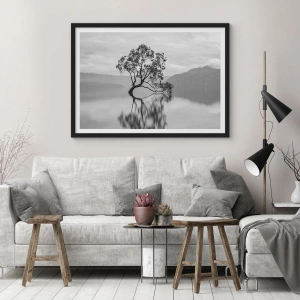 Plagát v čiernom ráme - Osamelý strom sa odráža v pokojnej vode - 50x70cm - Existuje taká krajina - Moderná nástenná dekorácia do obývacej izby a spálne ARTTOR