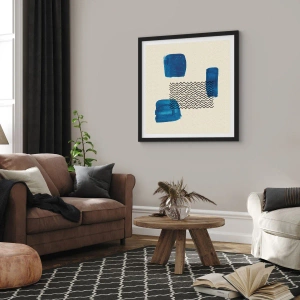 Plagát v čiernom ráme - Abstraktná kompozícia v odtieňoch námorníckej modrej s čiarami - 50x70cm - Abstraktné kvarteto - Moderná nástenná dekorácia do obývacej izby a spálne ARTTOR