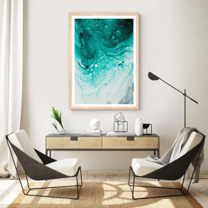Plagát v ráme zo svetlého duba - Prepadnúť sa v bielej a tyrkysovej - 91x61 cm