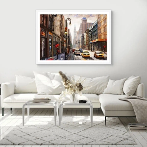 Plagát v bielom ráme - New York – farebný aj v daždi - 70x50 cm