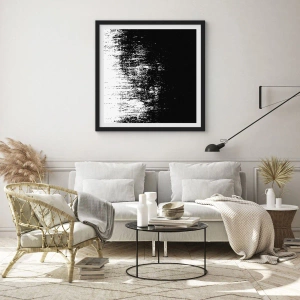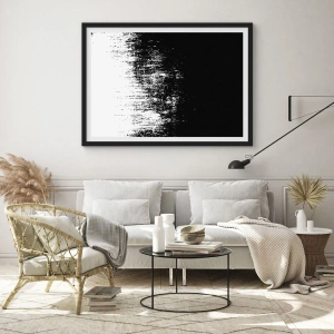 Plagát zobrazuje abstraktnú kompozíciu v kontrastných odtieňoch čiernej a bielej. Minimalistický dizajn a rafinovaná estetika vytvárajú umelecké dielo, ktoré upúta pozornosť a vnáša do interiéru modernú atmosféru.