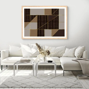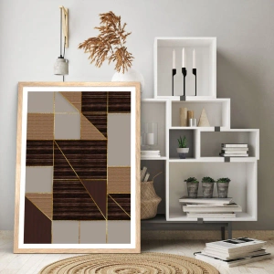 Plagát v ráme zo svetlého duba - Mozaika hnedej a zlatej - 50x70 cm