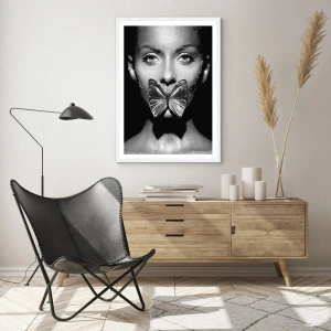 Plagát v bielom ráme - Motýlí bozk - 40x30 cm
