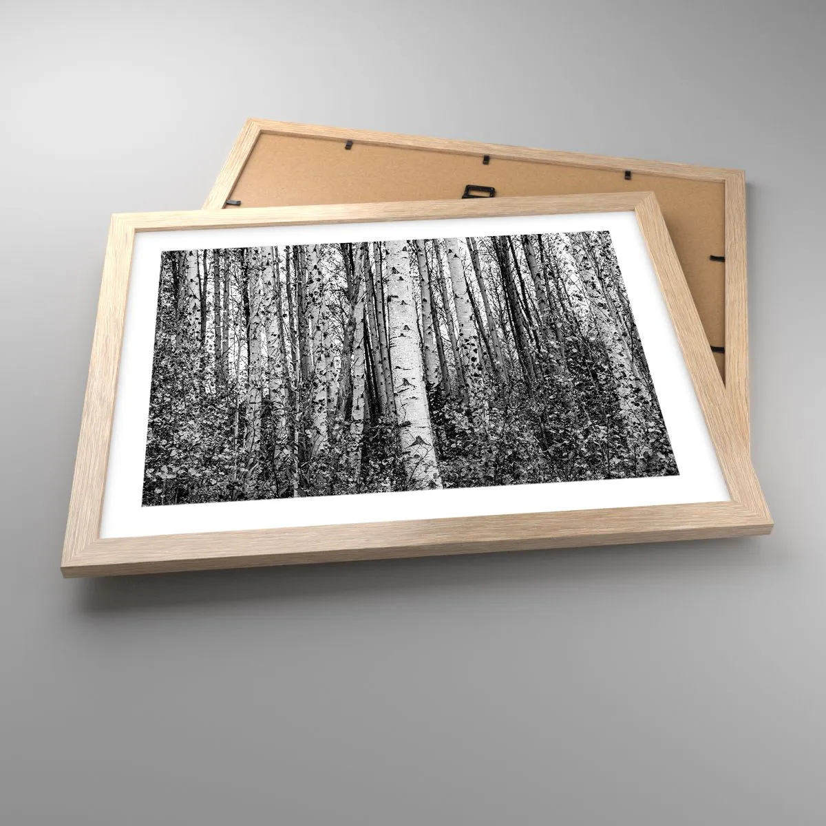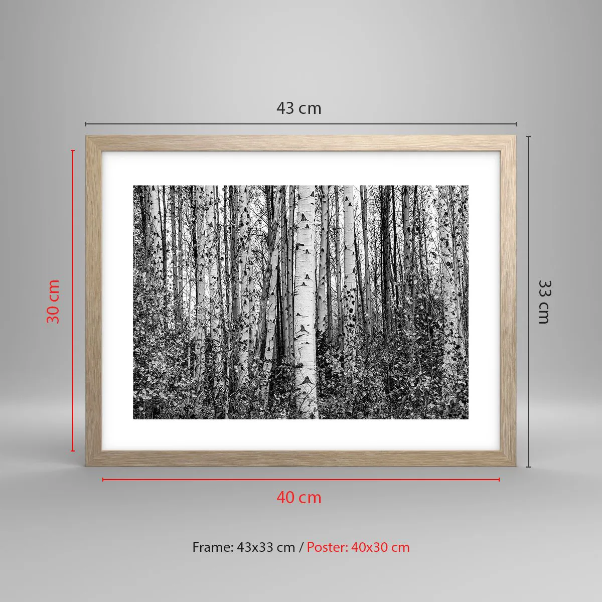 Plagát v ráme zo svetlého duba - Brezová kolonáda - 40x30 cm