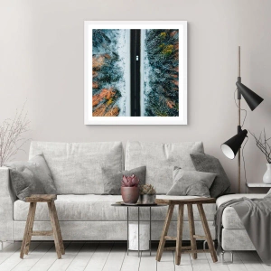 Plagát v bielom ráme - Cez zimný les - 30x30 cm